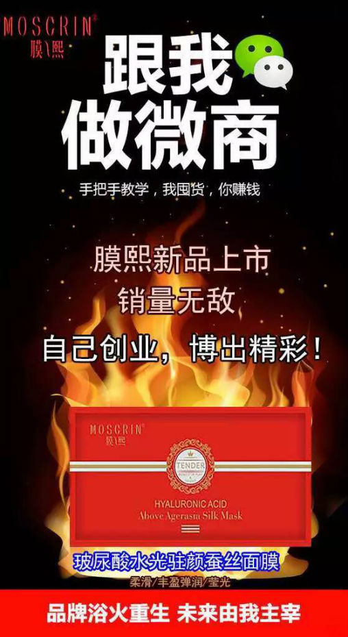 【MOSCRIN膜熙】 微商全新模式火爆招商 它是-玻尿酸水光驻颜蚕丝面膜 它是-膜类经典巨作!!! 它是-微商概念新领域!! 它是-转变微商急剧恶化的领航...